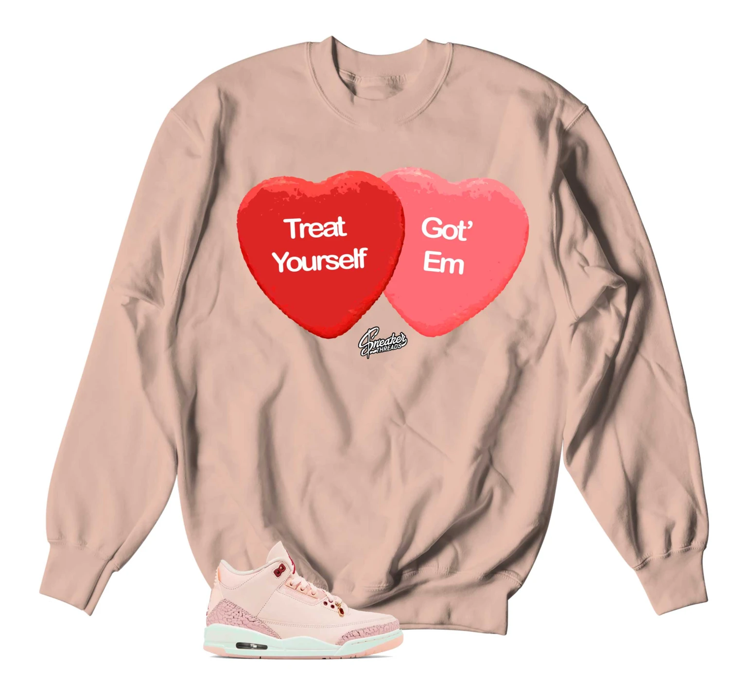 The perfect sweatshirt to match your Jordan Retro 3 “treat yourself” in washed coral & gym red.