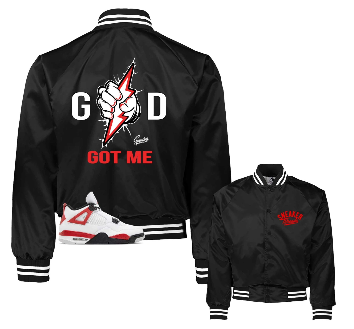 Varsity jacket matches your Retro 4 red cement shoes with tour yellow.