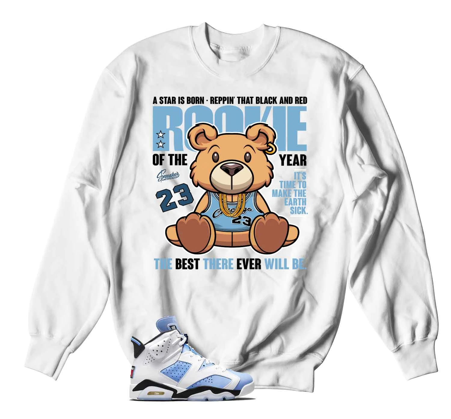 Sneaker sweater to match your Jordan Retro 6 UNC university blue | Sneaker Outfit